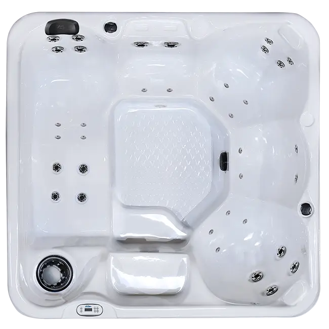 This spa will capture your heart. The Hawaiian is fully loaded with 36 exclusive candy cane jets that are placed in just the right spots to melt away stress. It fits 6 people with a full size lounger and two captain seats.