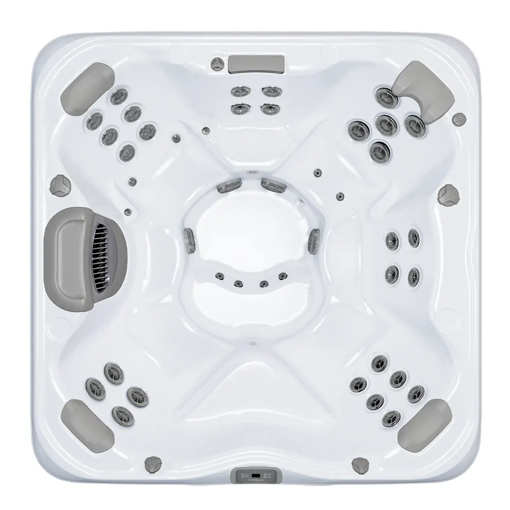 The X7 is a conventional high capacity hot tub that provides the experience of an eight-foot spa in a space-saving footprint. With incredibly comfortable premium corner seating and plenty of room to stretch your legs, all at an affordable price, you will love relaxing and entertaining in your X7 hot tub by Bullfrog Spas.
